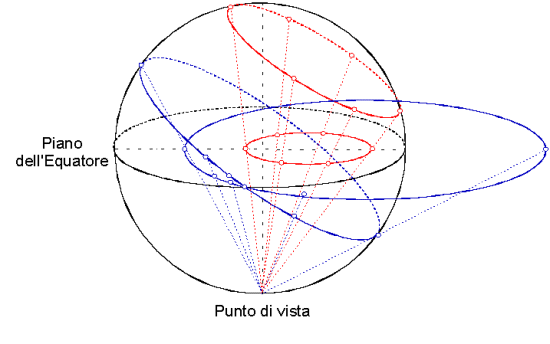 La rappresentazione di un cerchio minore ed un cerchio massimo