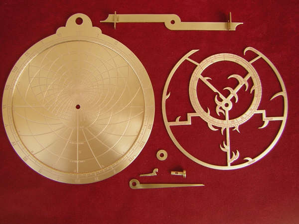 Le parti dell'astrolabio smontate (realizzazone di Luigi Chiaiese)