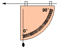 La parte curva del settore è contrassegnata con una graduazione da 0° a 90°, in maniera tale che quando il lato con i mirini è perfettamente orizzontale il filo a piombo deve indicare il valore 0°.