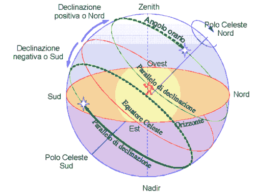 Un astro per effetto del suo moto (apparente) diurno lascia sulla S.C. una traccia circolare e parallela all’Equatore Celeste; tale traccia prende nome di parallelo di declinazione e la sua posizione è esprimibile con la distanza angolare che lo separa dall’Equatore stesso.
